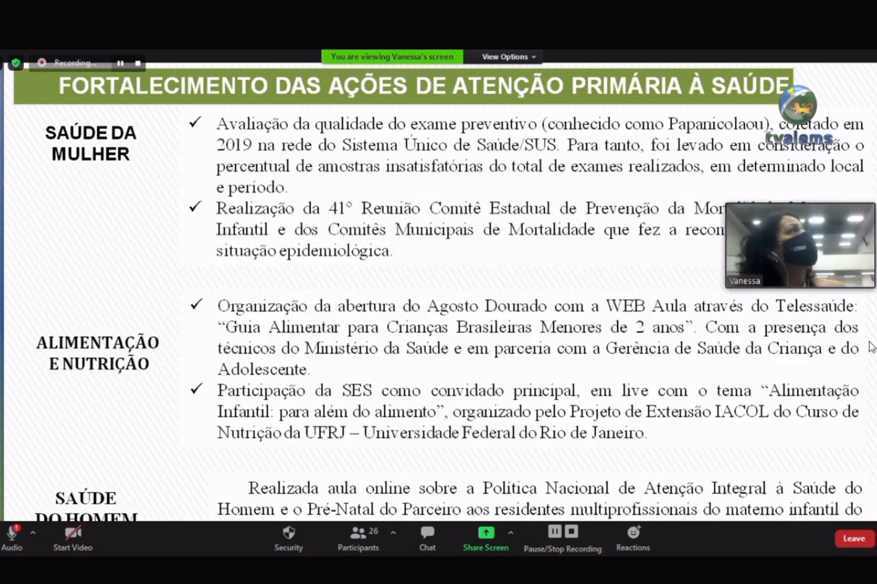 23/11/2020 - Audiência Pública remota para prestação de contas da Saúde