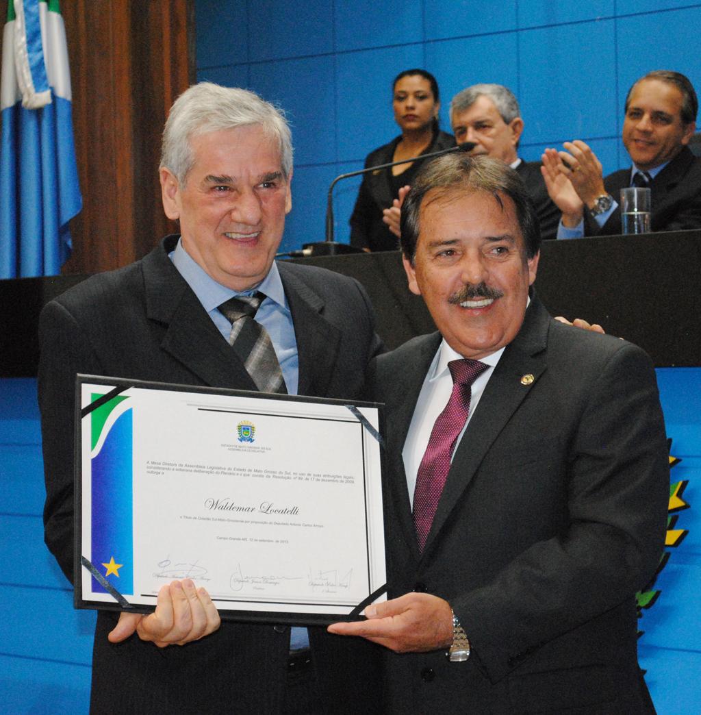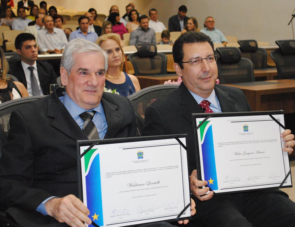 13/09/2013 - Waldemar Locatelli e Walter Gargione Adames recebem Título de Cidadão Sul-Mato-Grossense