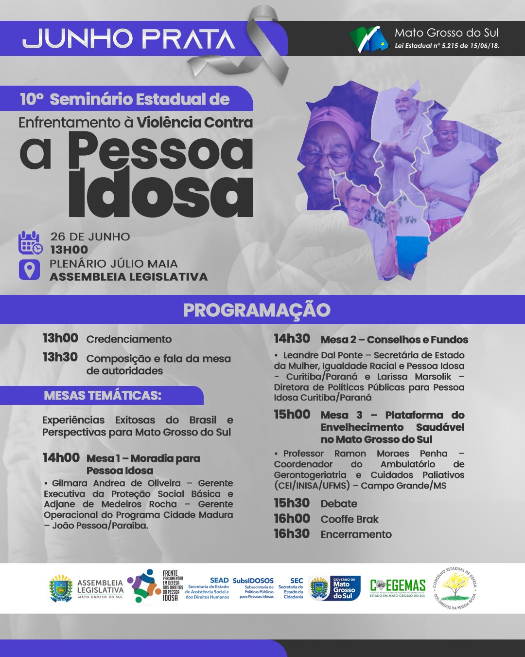 A Assembleia Legislativa de Mato Grosso do Sul realiza nesta quinta-feira, dia 26, o 10º Seminário Estadual de Enfrentamento à Violência Contra a Pessoa Idosa. O evento, promovido pela Frente Parlamentar em Defesa dos Direitos da Pessoa Idosa, presidida pelo deputado estadual Renato Câmara, reúne especialistas, autoridades e representantes da rede de proteção para discutir desafios, soluções e experiências bem-sucedidas na defesa dos direitos dos idosos.