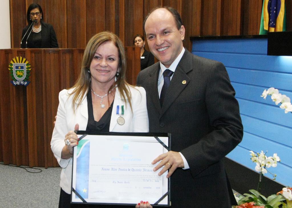 Dep. Junior Mochi Entrega a placa Honra à Amizade a dep. Celina Jallad