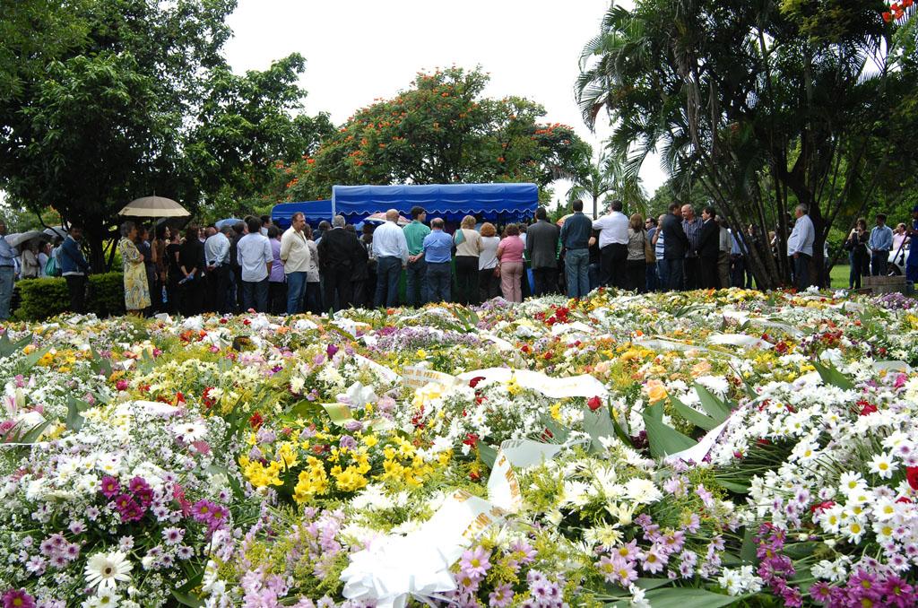 Coroas formaram verdadeiro mar de flores no enterro de Celina Jallad.