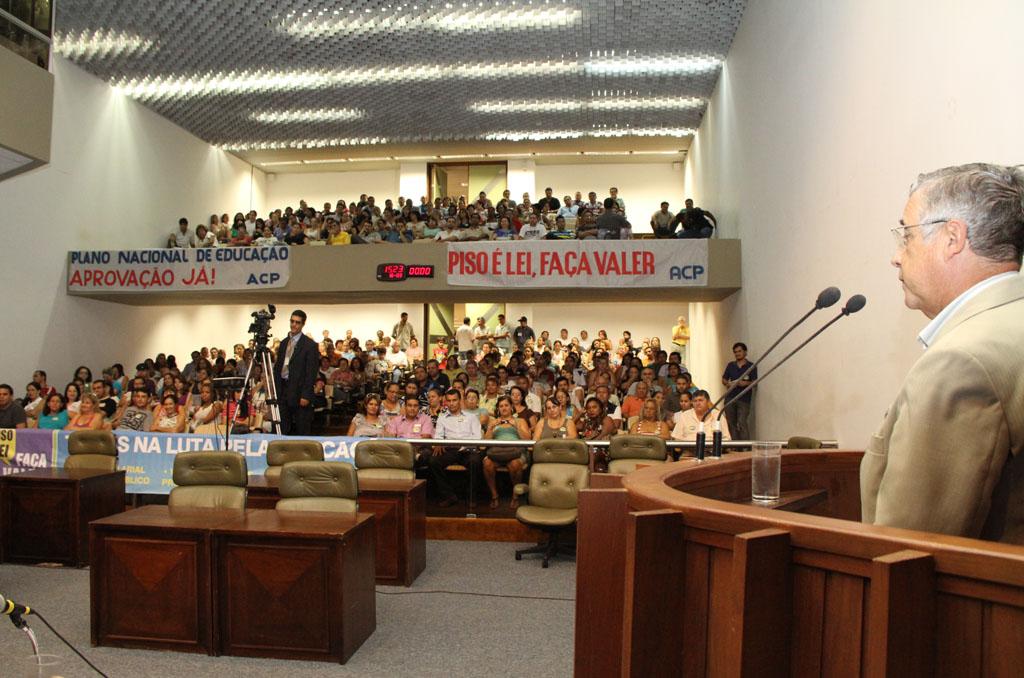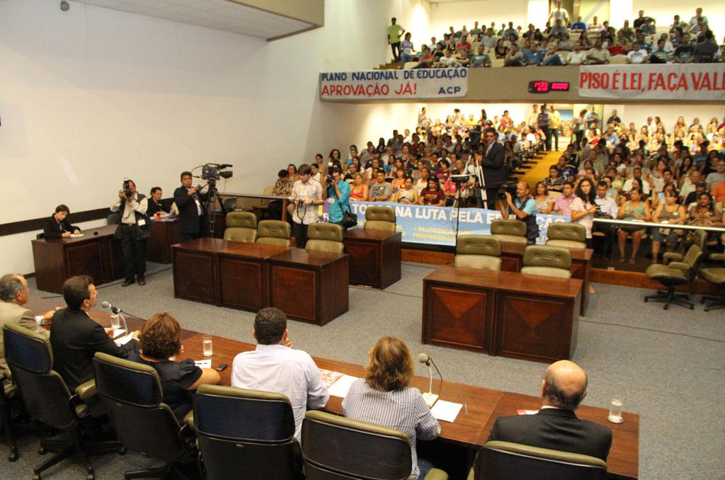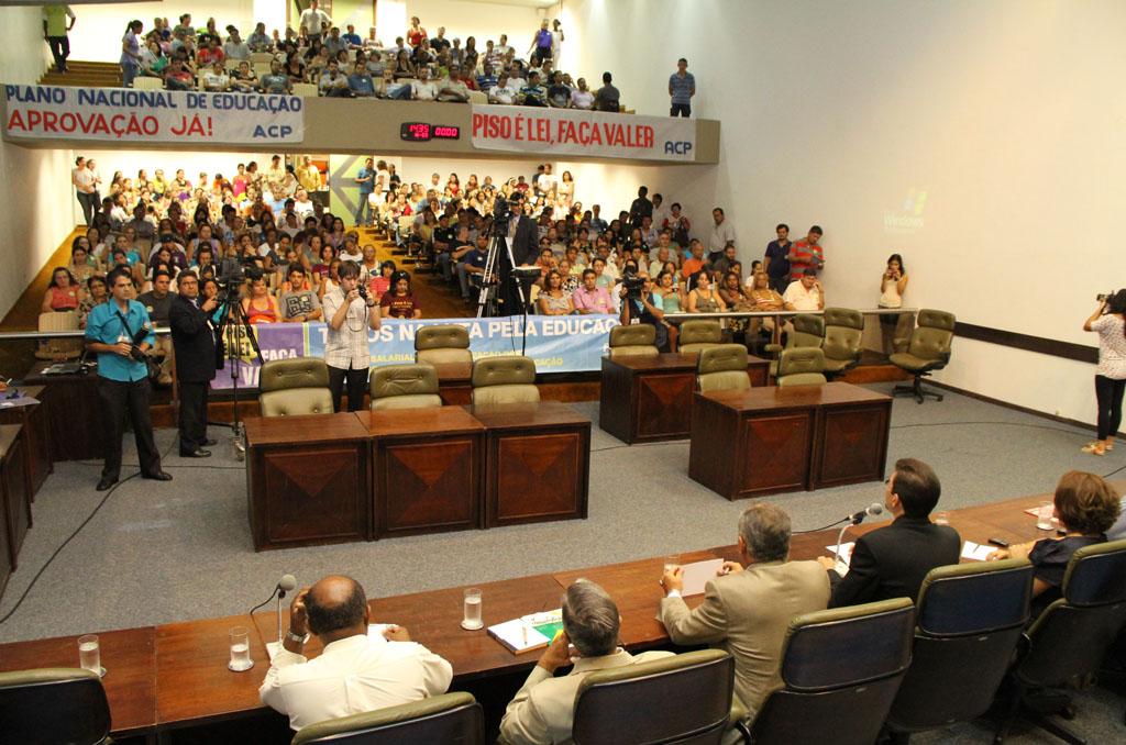 O plenário da Assembleia Legislativa ficou lotado por cerca de 400 educadores.