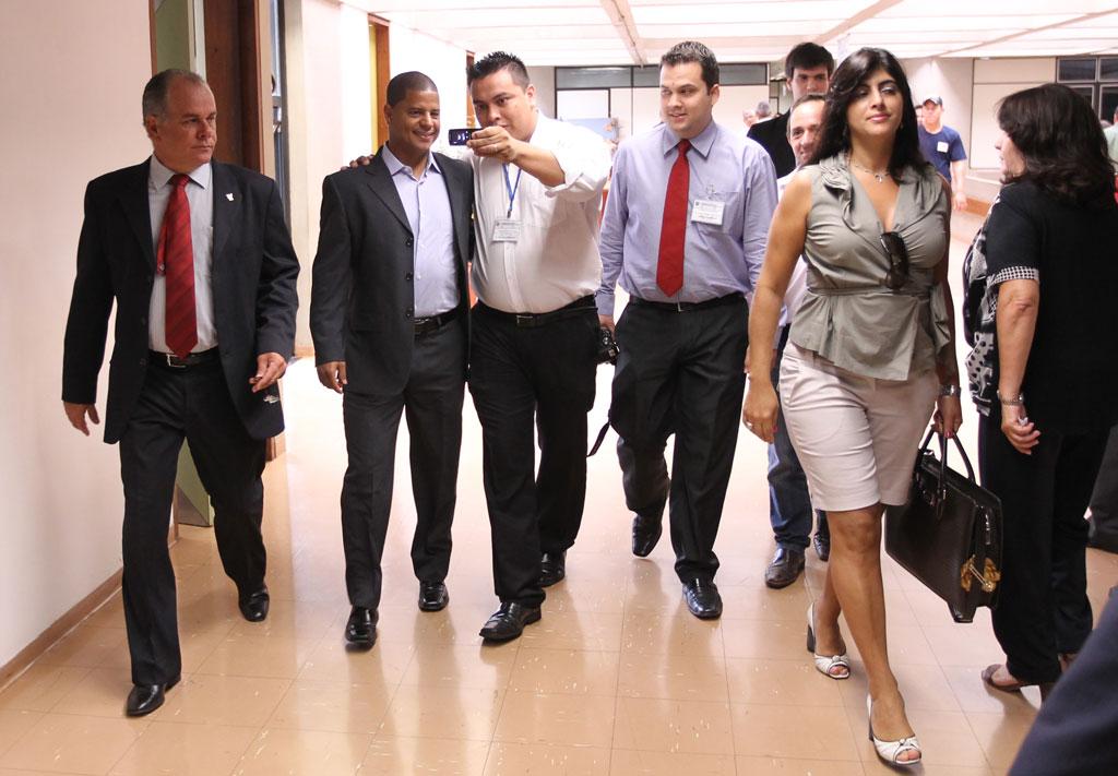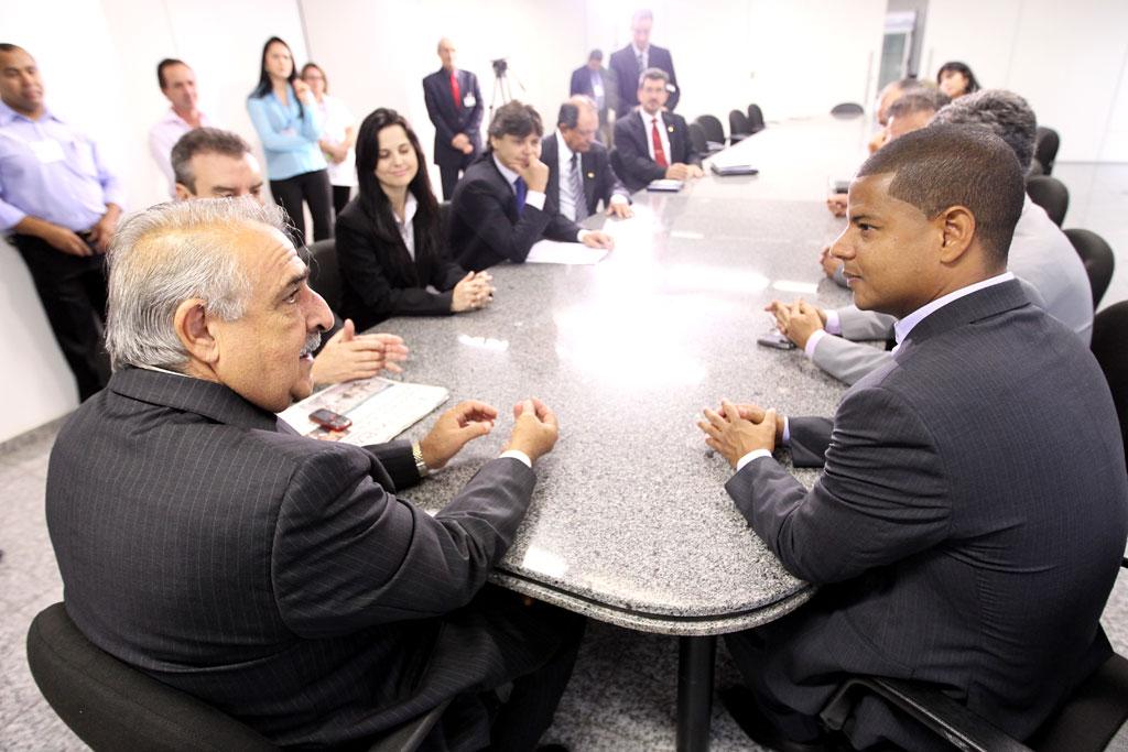 Ídolo do Corinthians e da Seleção, Marcelinho Carioca foi recebido pelos deputados na Presidência da Assembleia Legislativa.