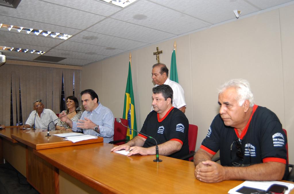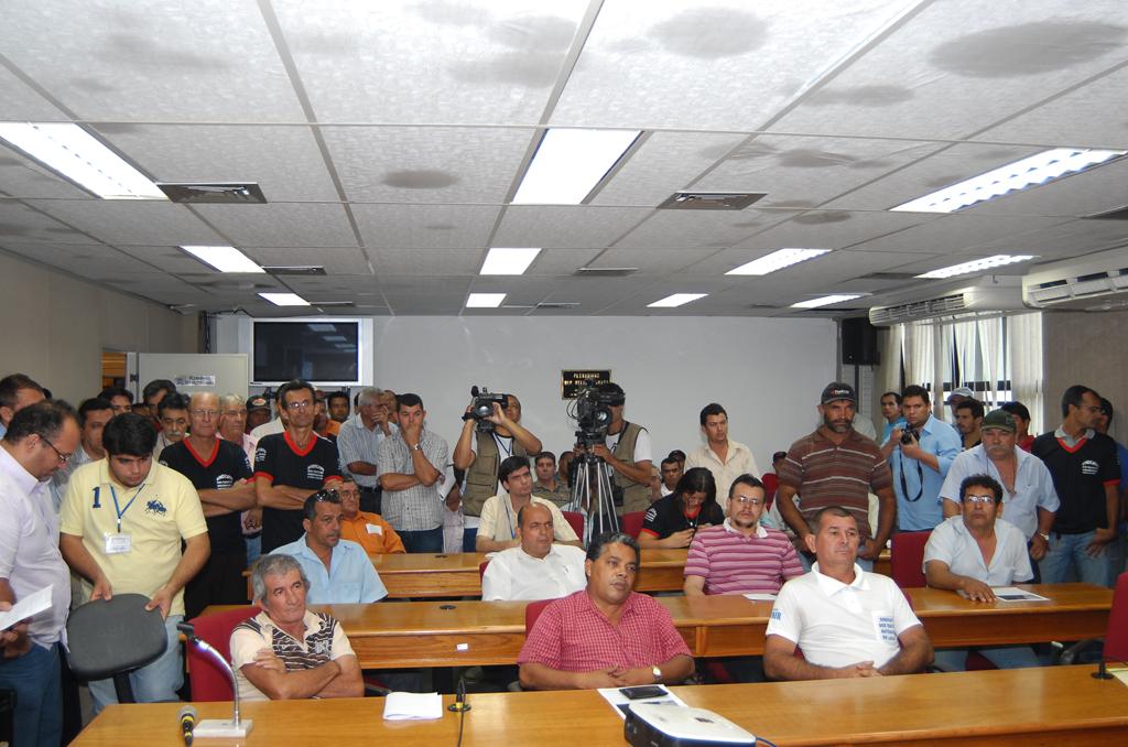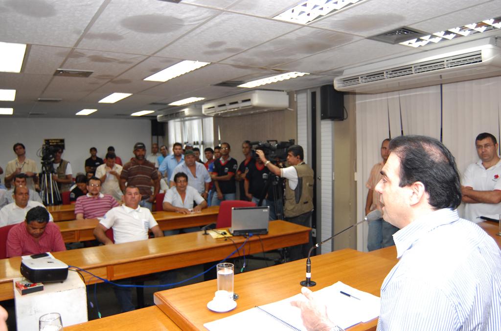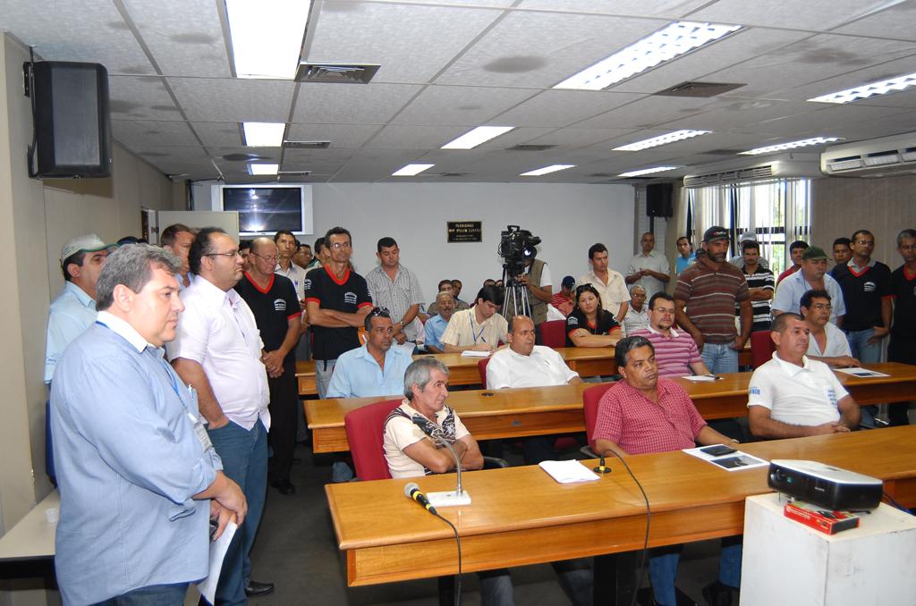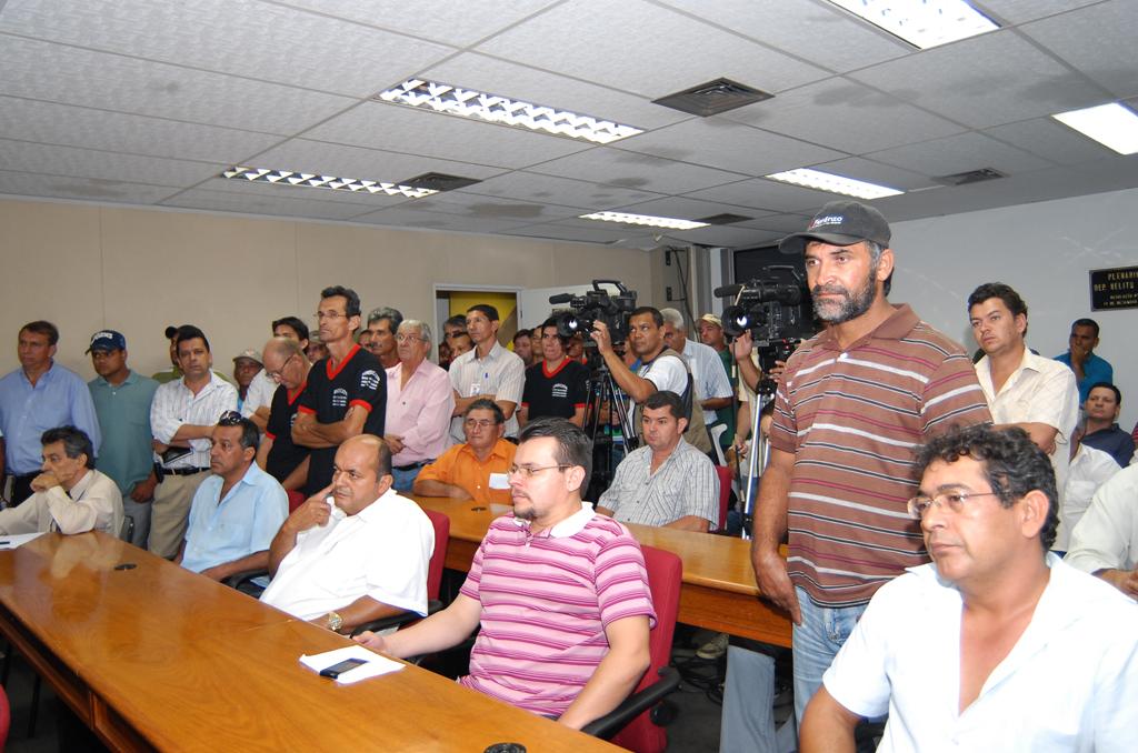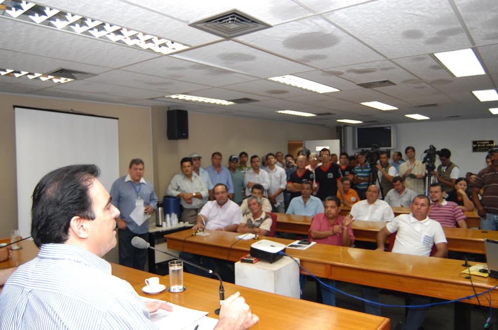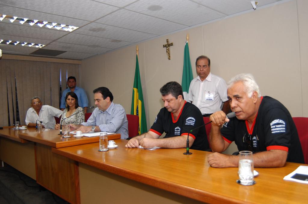 Deputado Felipe Orro conversando com taxistas sobre corridas intermunicipais em reunião ocorrida no Plenário.