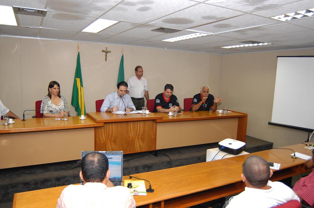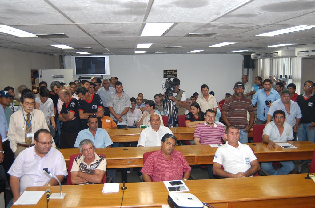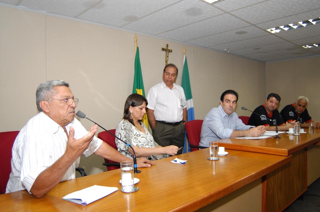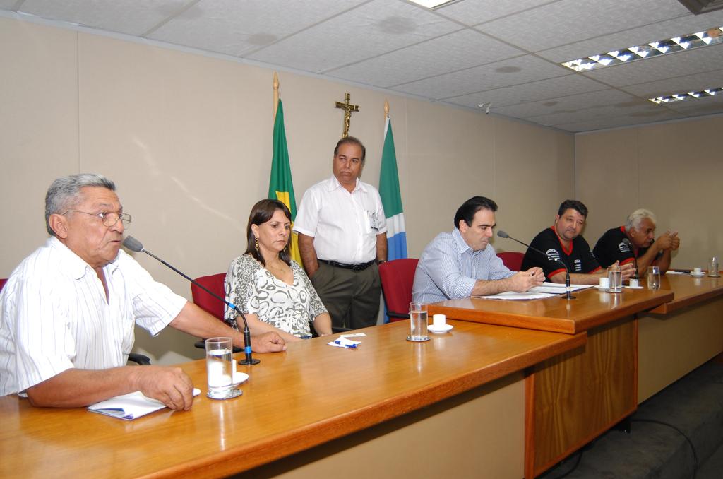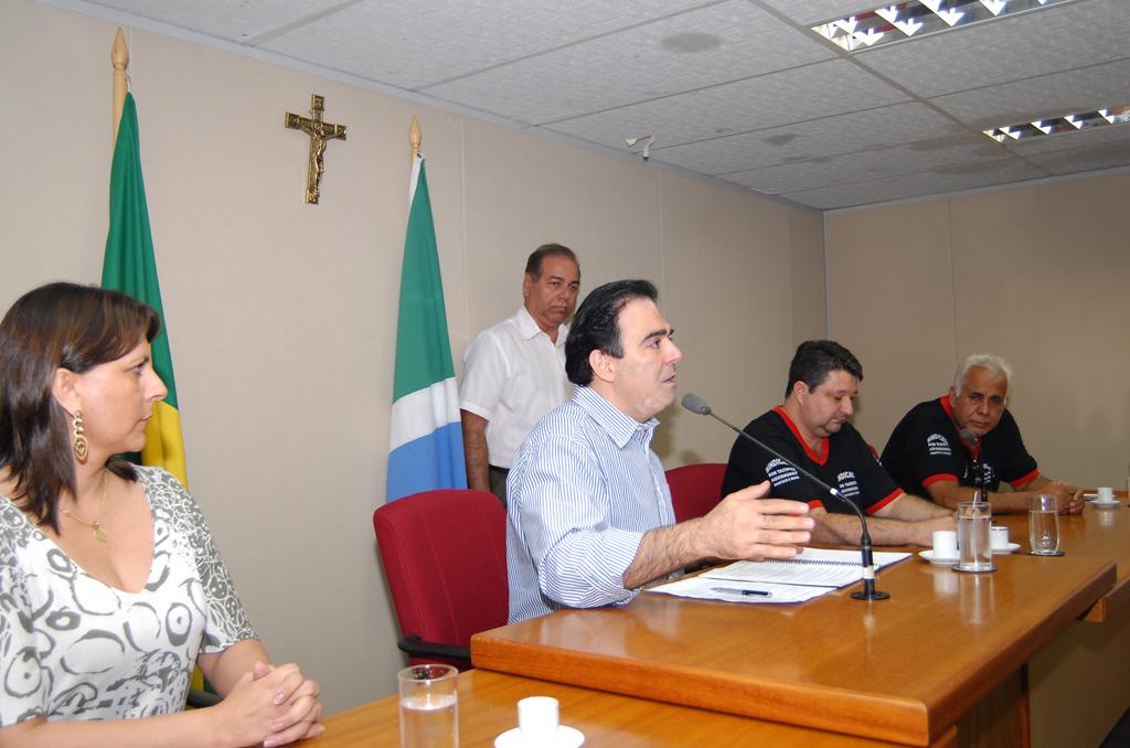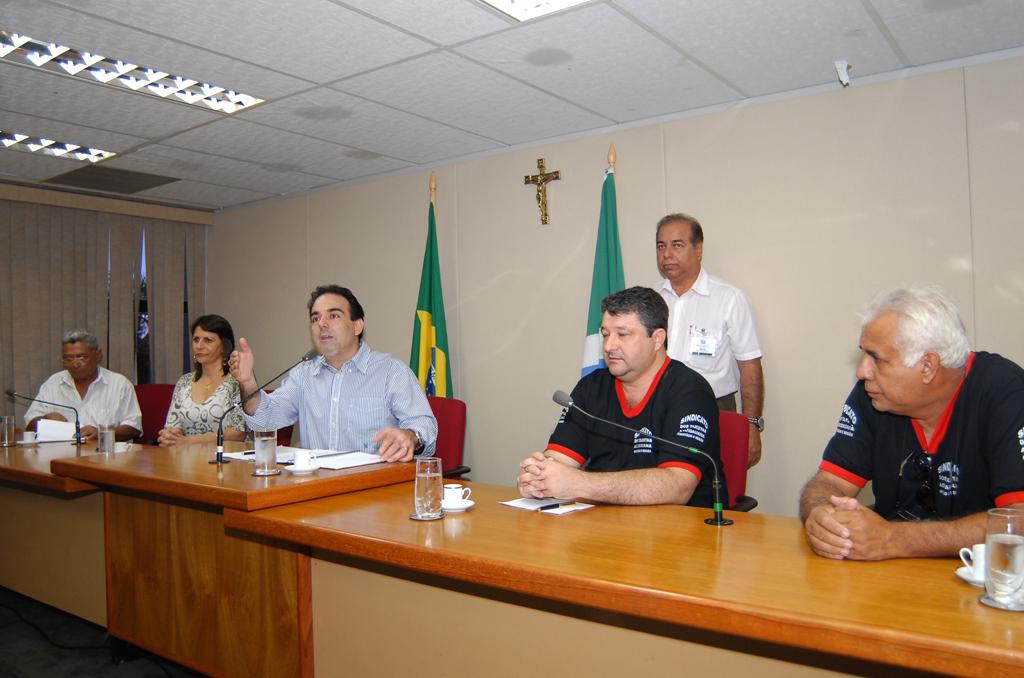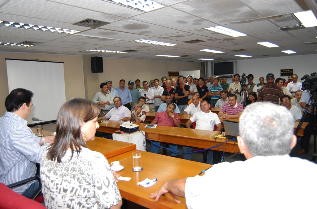 Deputado Felipe Orro conversando com taxistas sobre corridas intermunicipais em reunião ocorrida no Plenário.